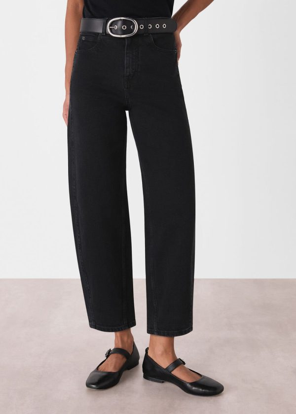 Discover the signature Whistles Barrel Leg Jean, featuring a modern twist on timeless denim style. Crafted from premium black stretch denim, these jeans deliver exceptional comfort with their high-waisted design and contemporary barrel-leg silhouette that skims through the thigh and crops perfectly above the ankle. Versatile enough to dress up or down, they pair effortlessly with everything from casual sneakers to sophisticated ankle boots for a polished everyday look.