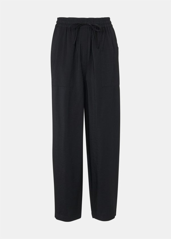 Discover your new warm-weather wardrobe essential with these sophisticated tie-waist trousers. Crafted for ultimate comfort and modern style, these lightweight pants feature a versatile black hue, practical roomy pockets, and an adjustable tie waist that creates a personalized fit. Perfect for weekend adventures or elevated casual wear.