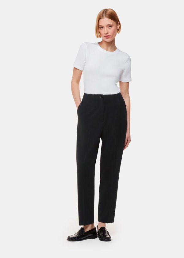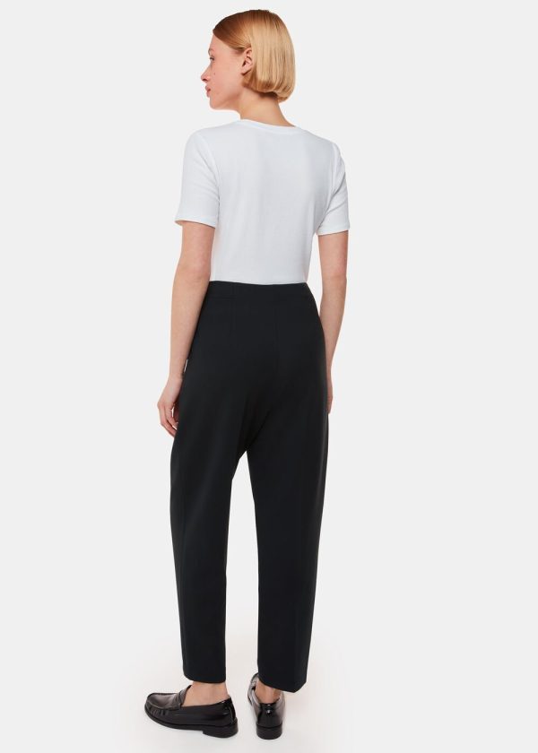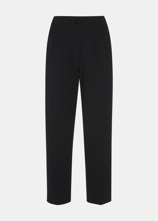 Elevate your professional wardrobe with these essential Ponte trousers featuring a sophisticated slim fit and modern carrot silhouette. The versatile black shade effortlessly complements any color in your closet, making these the perfect foundation for countless office-to-evening looks. Style these comfortable, stretch Ponte trousers with your favorite printed blouses and chic knitwear for polished ensembles that transition seamlessly from day to night.