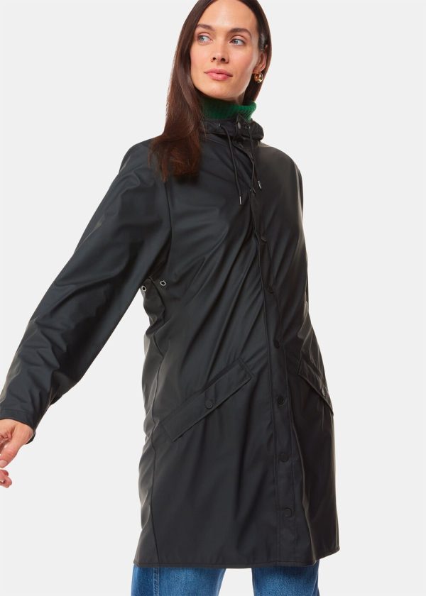Crafted from premium waterproof lightweight fabric with a sophisticated matte finish, this versatile unisex rain jacket from Rains delivers timeless style you’ll reach for season after season. Designed with a contemporary raincoat silhouette, it features double welded slanting pocket flaps, adjustable cuffs, and a distinctive fishtail design for both form and function.