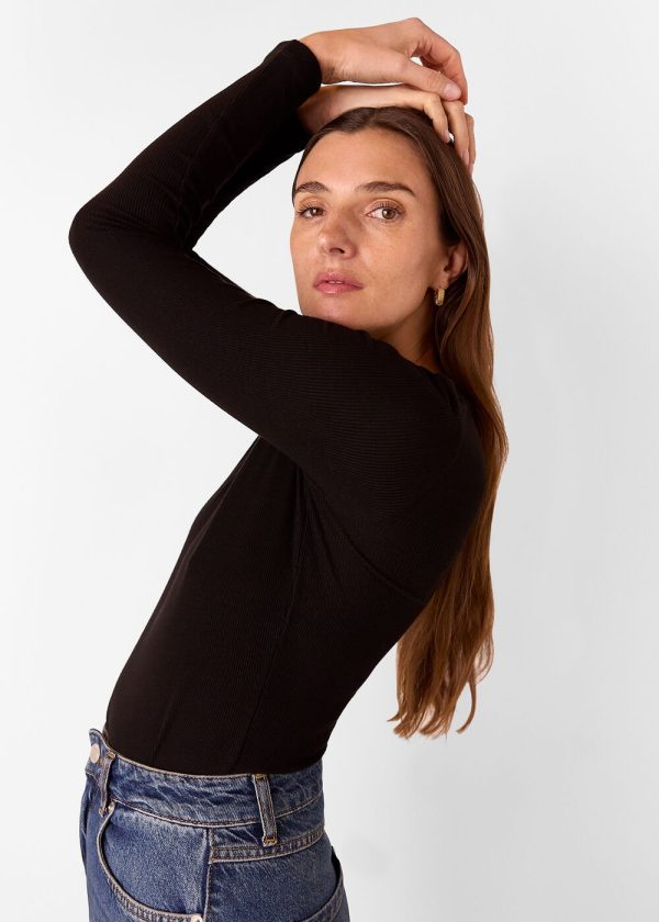 Elevate your everyday style with our essential ribbed crew neck top. This timeless black staple effortlessly complements everything from your favorite jeans to statement skirts, creating endless versatile looks for your wardrobe.