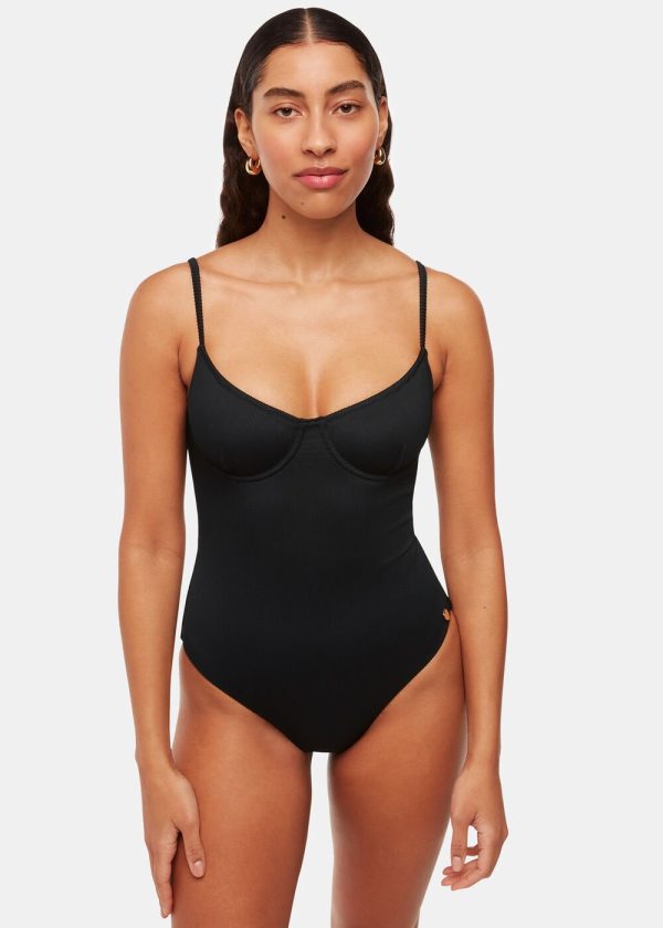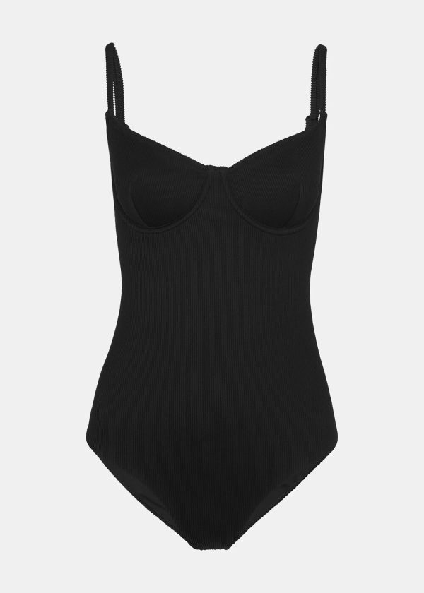 Elevate your summer style with this timeless underwire swimsuit that delivers exceptional support and lasting quality. Crafted from premium ribbed-textured recycled nylon, this sophisticated design features structured underwire bust support that creates a beautifully defined silhouette. Perfect for beach days with your favorite accessories, and easily transitions to resort wear when paired with a stylish cover-up.