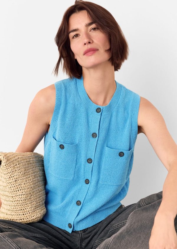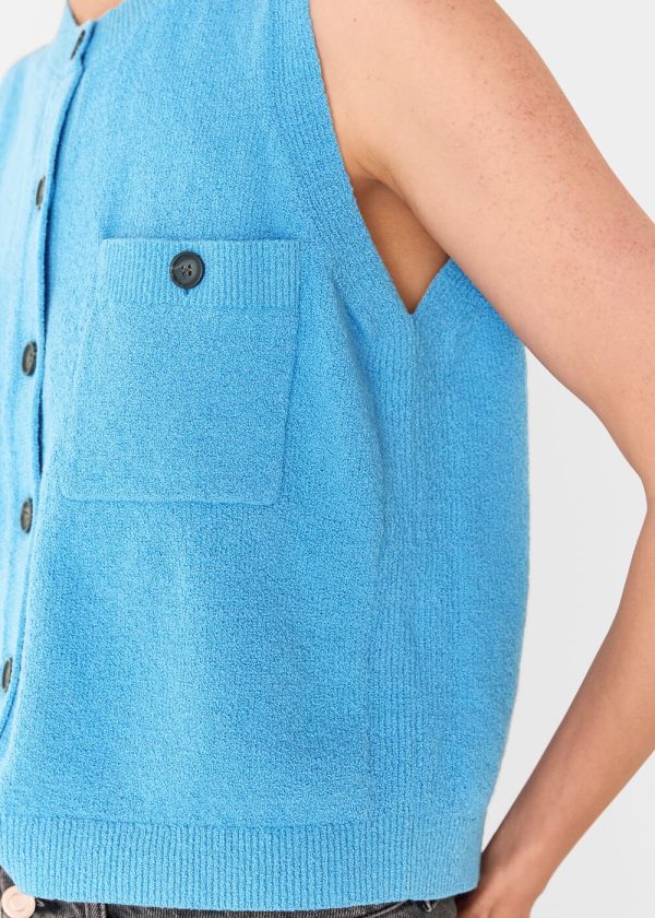 Elevate your warm-weather wardrobe with Whistles’ beautifully crafted Cotton Boucle Textured Tank, featuring a stunning blue hue and sophisticated textured finish. This sleeveless top delivers polished casual style with its clean high neckline and functional chest pockets, perfect for creating effortless summer outfits.