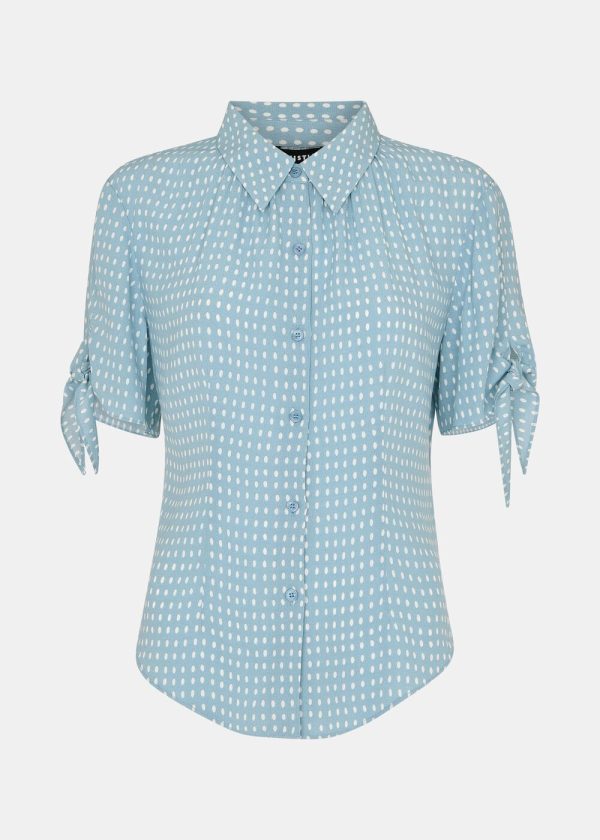 Women’s Blue Multi Oval Spot Tie Sleeve Blouse | Whistles