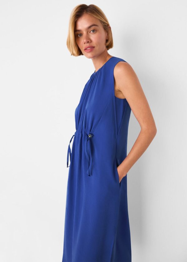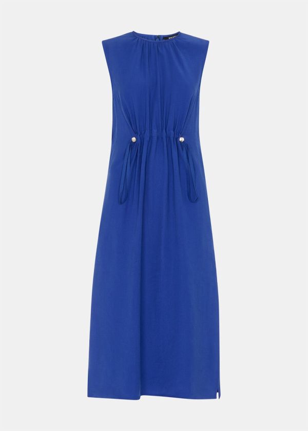 Elevate your warm-weather wardrobe with our sophisticated sleeveless midi dress, featuring a stunning blue hue that commands attention. This effortlessly chic design combines relaxed comfort with polished elegance, offering a versatile silhouette that transitions seamlessly from daytime outings to evening gatherings. The adjustable tie-waist creates customizable definition, allowing you to personalize your look while the midi length and crew neckline deliver timeless appeal perfect for brunch dates, weekend adventures, or any sunny occasion.