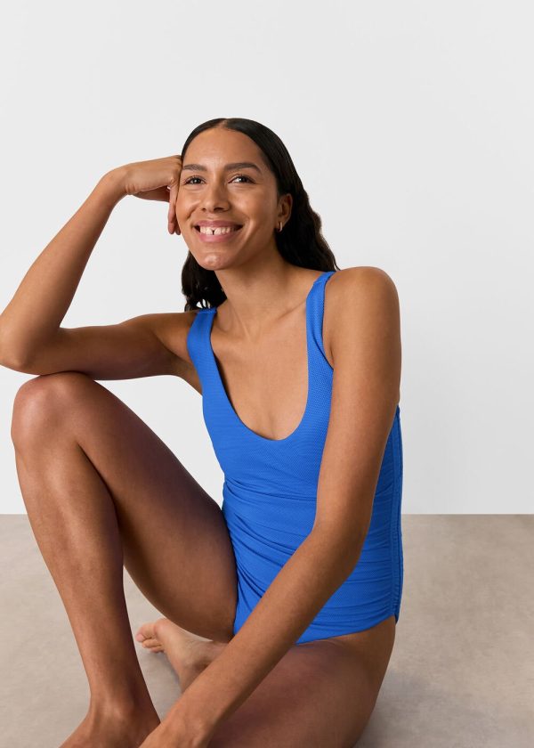 Experience exceptional comfort and style with our Textured Side Ruched Swimsuit, designed to elevate your beachwear collection. This stunning blue swimsuit features flattering ruching along the sides and a classic round neckline that creates a sophisticated silhouette. Perfect for poolside relaxation or ocean adventures, this versatile piece ensures you’ll look and feel incredible during all your sunny getaways.