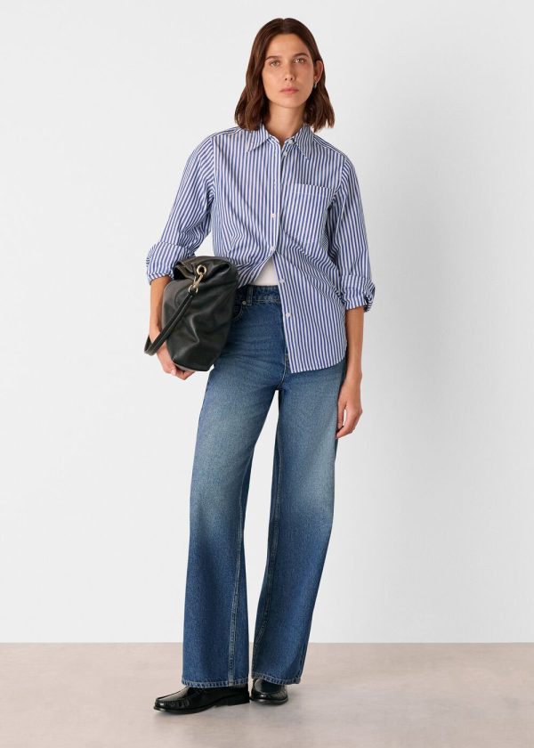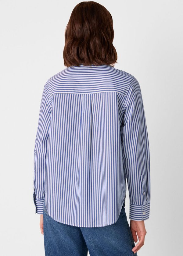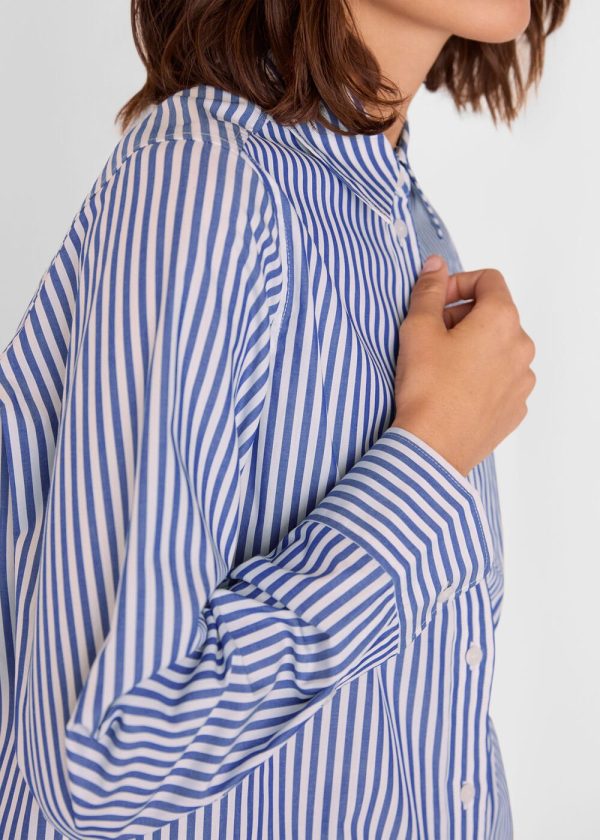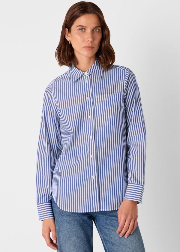 Elevate your everyday style with this timeless striped shirt that effortlessly transitions from casual outings to polished office wear. Our Relaxed Fit Stripe Shirt features a comfortable silhouette with crisp blue and white vertical stripes and a functional chest pocket, making it the perfect pairing for your favorite denim or tailored trousers.