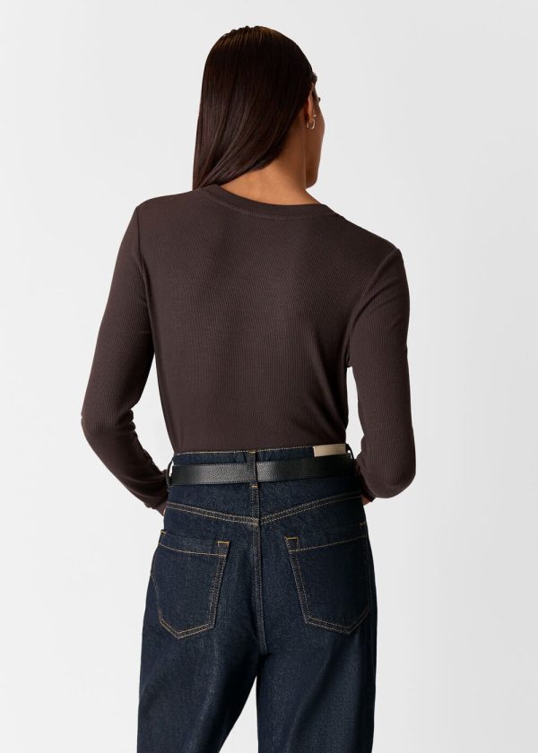 Elevate your everyday essentials with this beautifully crafted crew neck top. The rich brown hue creates endless styling possibilities, seamlessly transitioning from casual denim to sophisticated skirts for a polished look that works for any occasion.