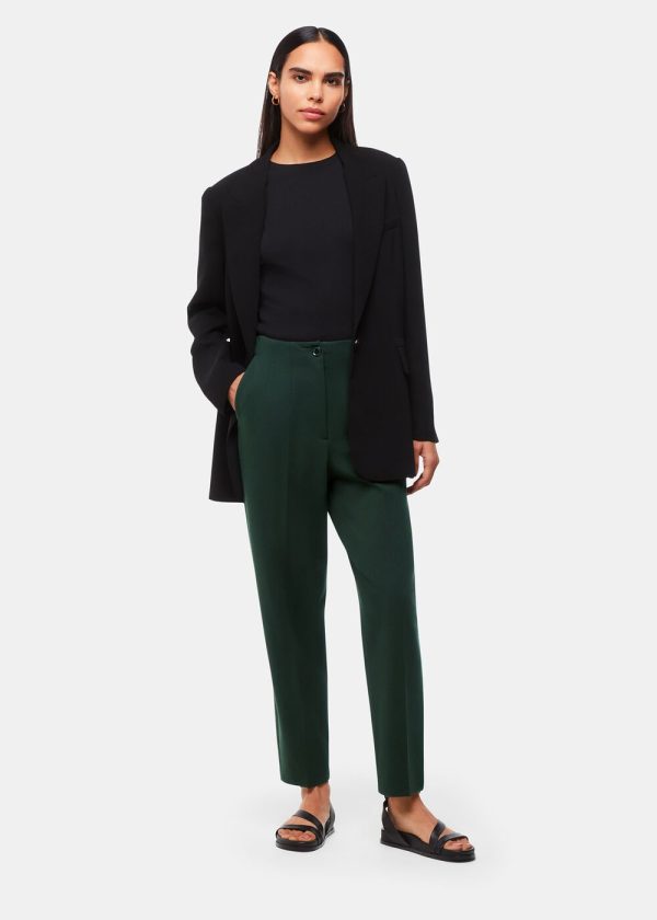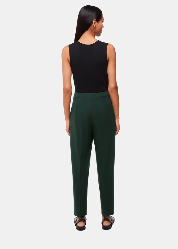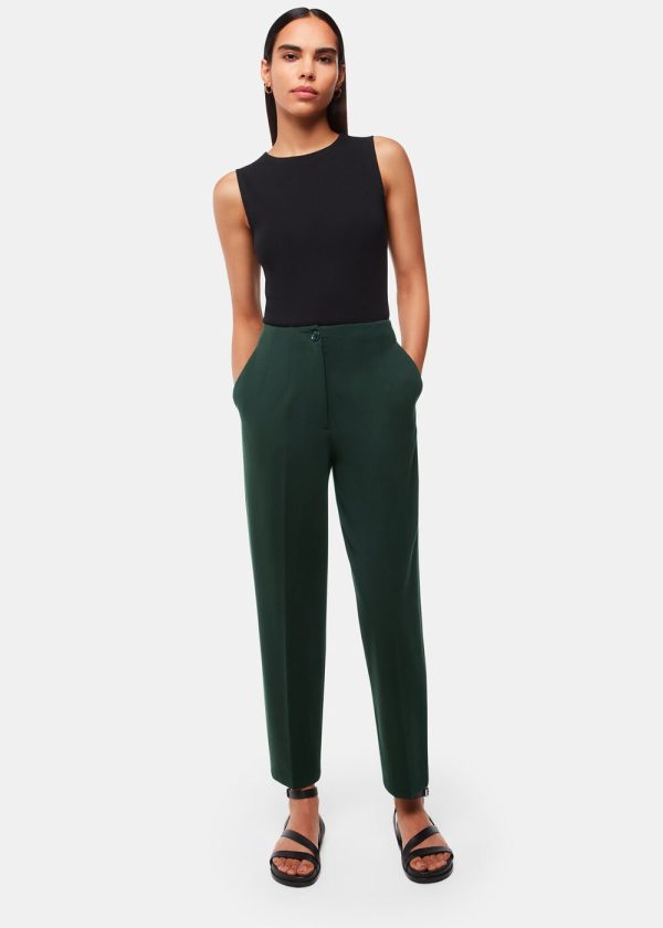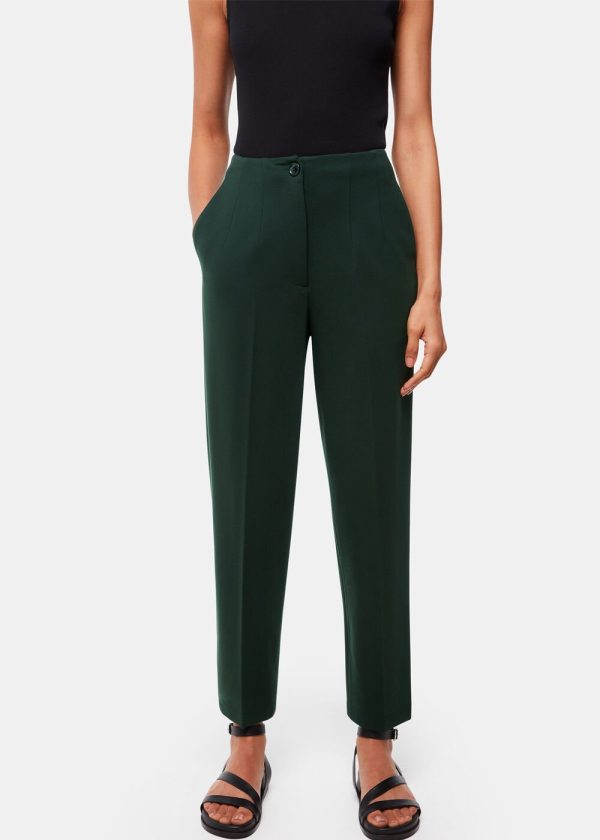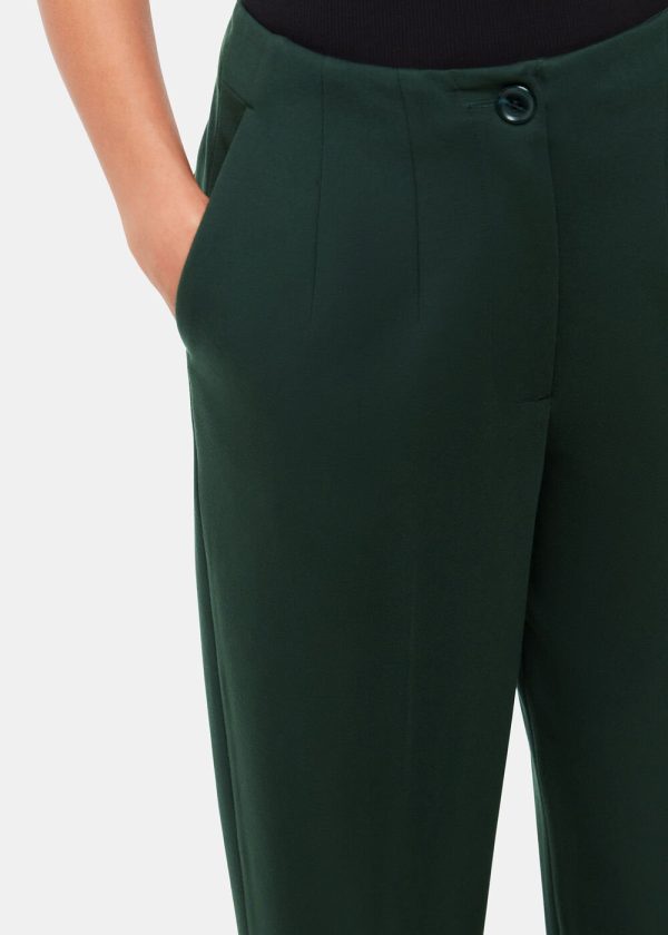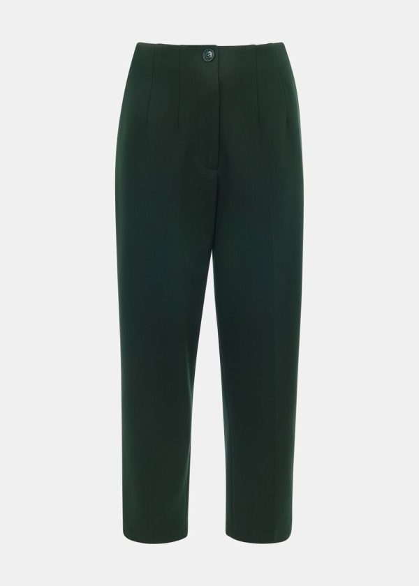 Elevate your professional wardrobe with these essential Ponte trousers featuring a contemporary slim fit and sophisticated carrot silhouette in a rich dark green hue. Designed for all-day comfort and effortless style, these versatile trousers transition seamlessly from office wear to evening occasions when paired with crisp blouses or cozy knitwear.