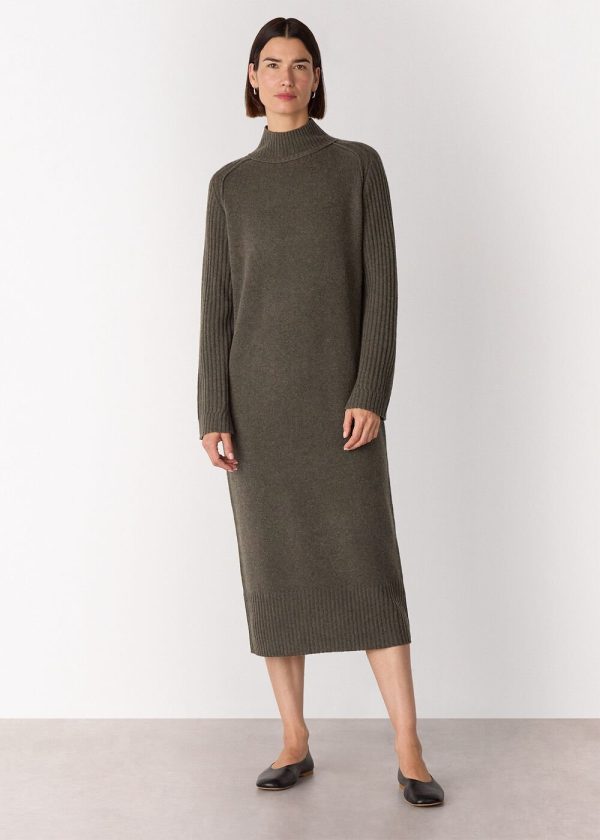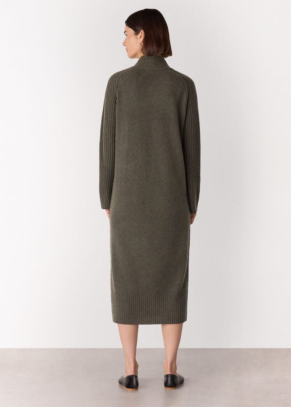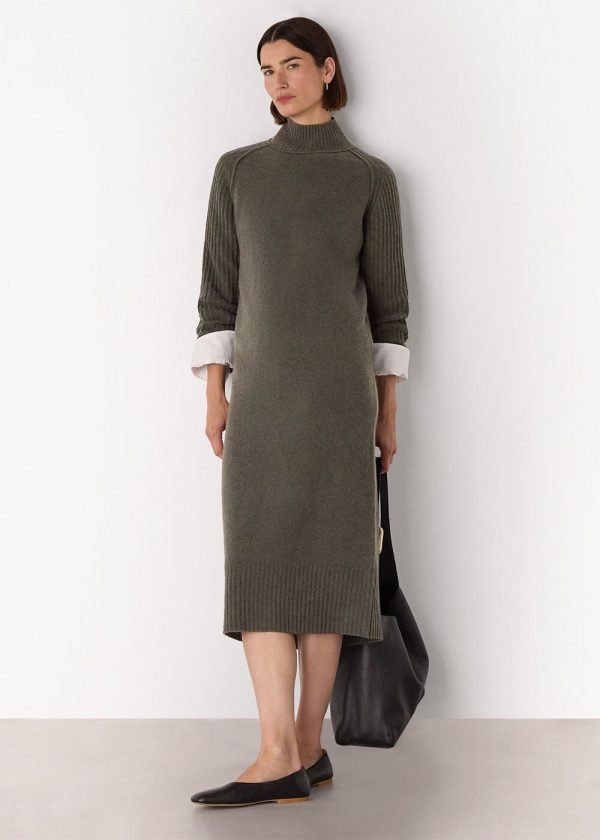 Discover Whistles’ signature approach to modern, effortless style with our Funnel Neck Wool Midi Dress. Expertly crafted from premium wool in a sophisticated dark green hue, this dress features a relaxed yet polished silhouette that moves beautifully with you. The elegant ribbed detailing at the collar and sleeve cuffs adds refined texture, while the cozy funnel neck creates an elevated, put-together look that transitions seamlessly from day to evening.