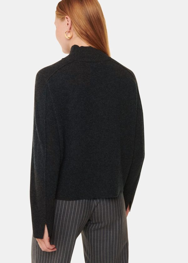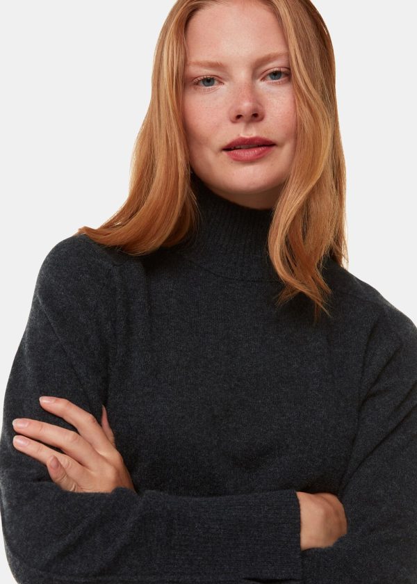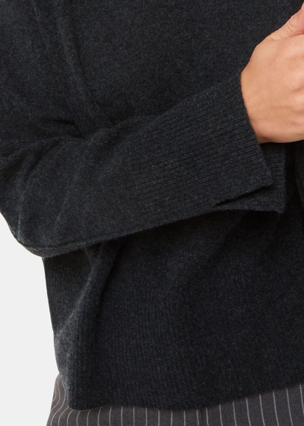 Crafted entirely from premium traceable cashmere, our Cashmere Funnel Neck Jumper delivers timeless elegance and exceptional comfort. Experience the luxurious softness against your skin with its sophisticated dark grey finish, featuring a contemporary mock neck design, relaxed dropped sleeves, and reinforced ribbed trims that ensure lasting shape retention.