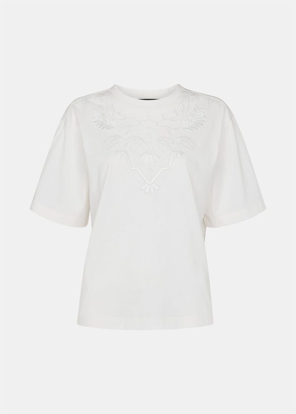 This season, Whistles elevates your everyday essentials with thoughtful design. Our Embroidered Cotton T-Shirt features a sophisticated embroidered motif at the chest in subtle tonal thread that adds elegant detail. Crafted from premium pure cotton with a regular fit that delivers timeless style, this top offers a clean, classic silhouette with a comfortable round neckline that’s perfect for daily wear.
