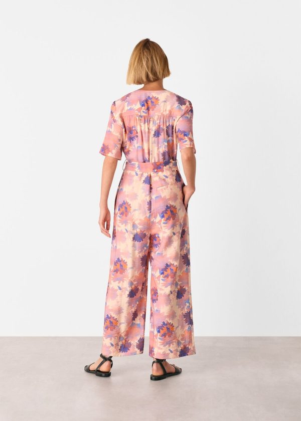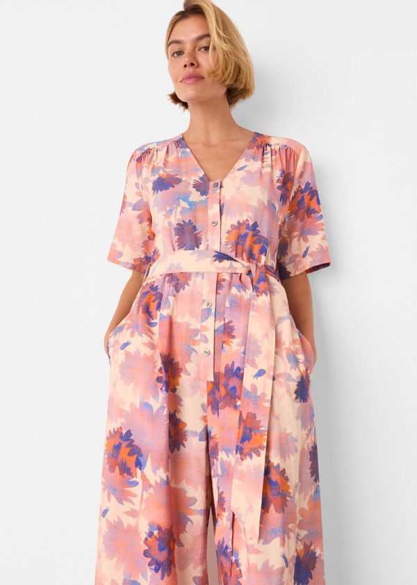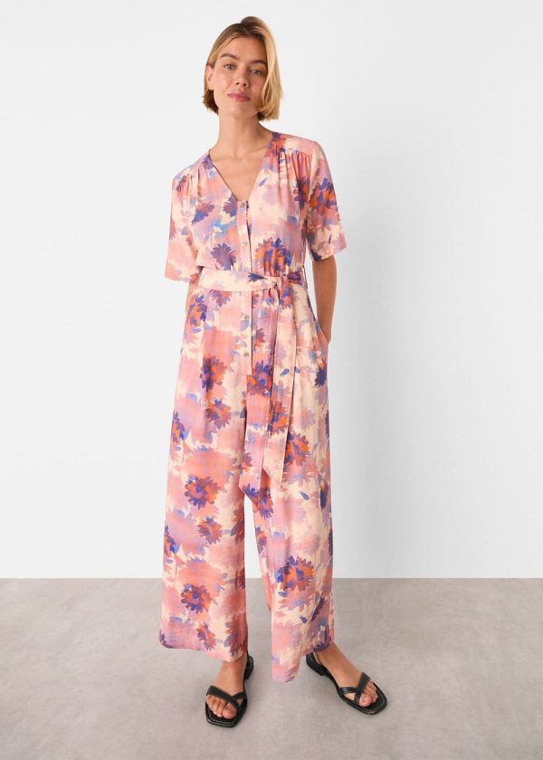 Our Floral Button Jumpsuit brings effortless style to your warm-weather wardrobe with its vibrant floral pattern featuring warm orange tones and sophisticated black accents. Designed with thoughtful details including short sleeves, a flattering V-neckline, and a waist-defining belt that creates a polished silhouette. Perfect for both weekend getaways and urban adventures.