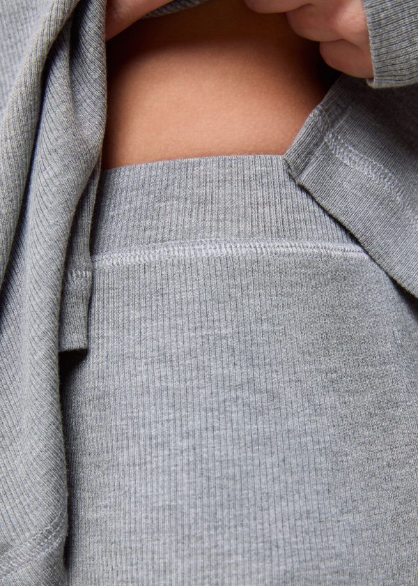 Elevate your sleepwear collection with our latest design team creation. These premium rib jersey pajama bottoms feature a timeless grey marl colorway that delivers exceptional lightweight comfort. The signature ribbed texture and flexible elastic waistband combine style with ultimate relaxation. Create the perfect loungewear set by pairing with our matching long sleeve top.