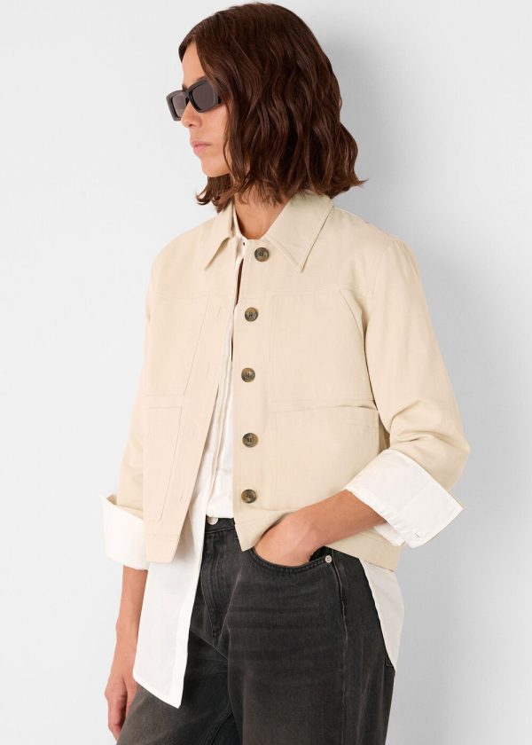Meet your new go-to transitional layer – the Mia Pocket Detail Jacket. Cut in a versatile regular fit, this jacket seamlessly transitions from professional office wear to weekend casual outings. The sophisticated ivory hue complements its timeless silhouette, featuring a structured collar and functional patch pockets that combine practical storage with elevated style. Layer it over your favorite knits or tees for an effortlessly polished everyday look.