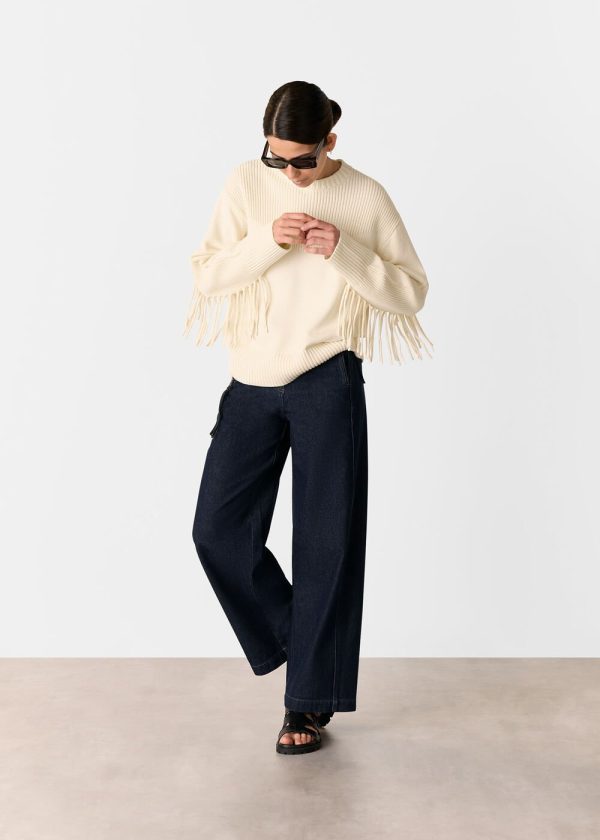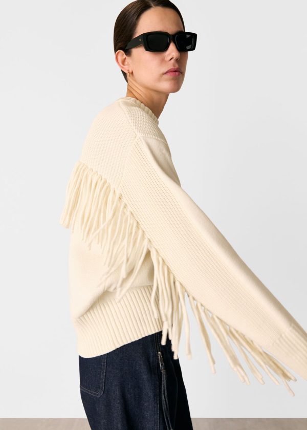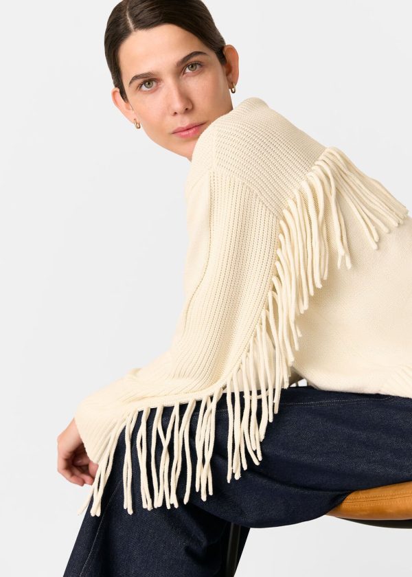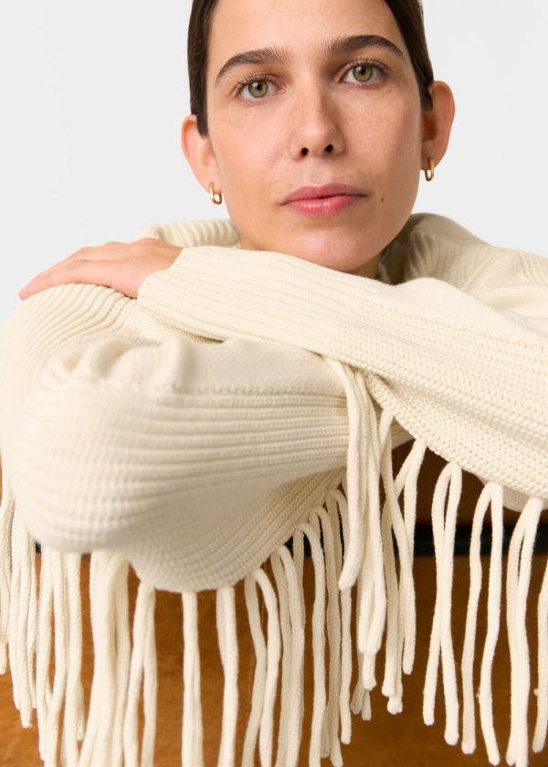 Women’s Ivory Fringed Rib Detail Sweater | Whistles