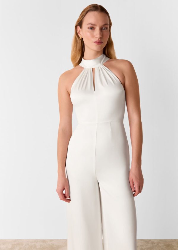 Whistles Wedding presents an exquisite collection of contemporary bridal and bridesmaid styles that blend timeless elegance with modern sophistication. Designed for the fashion-forward bride seeking a distinctive alternative to traditional wedding attire, this halterneck jumpsuit delivers exceptional style and comfort for your special day. Featuring a sleek straight silhouette with elegant wide legs, the design showcases a refined high neckline with a delicate front keyhole detail and adjustable tie-back closure for a perfect customized fit. Perfect for any season from spring garden weddings to winter celebrations, this stunning jumpsuit creates unforgettable memories with its sophisticated charm and exceptional craftsmanship.
