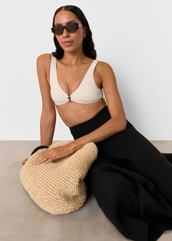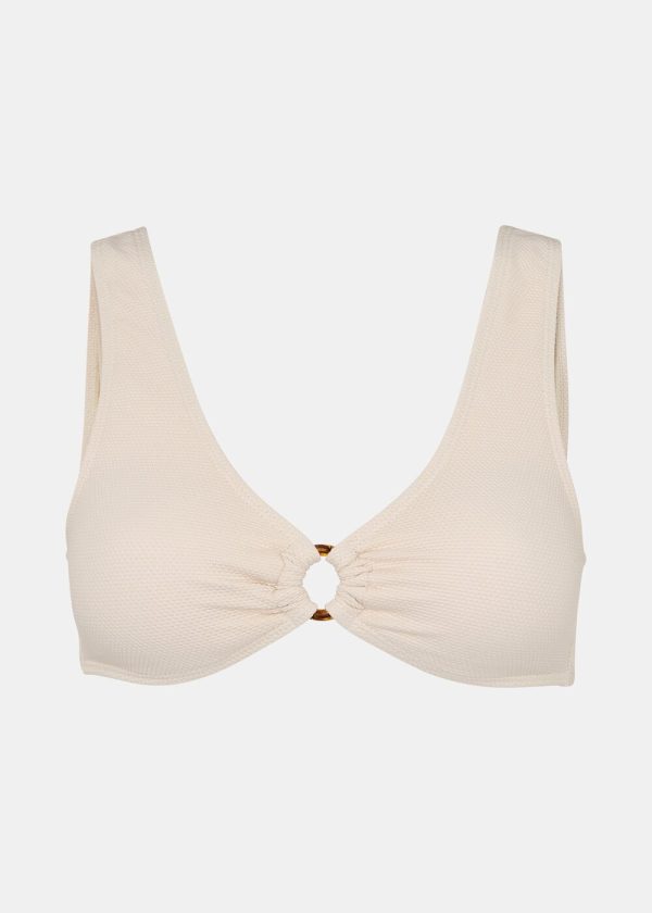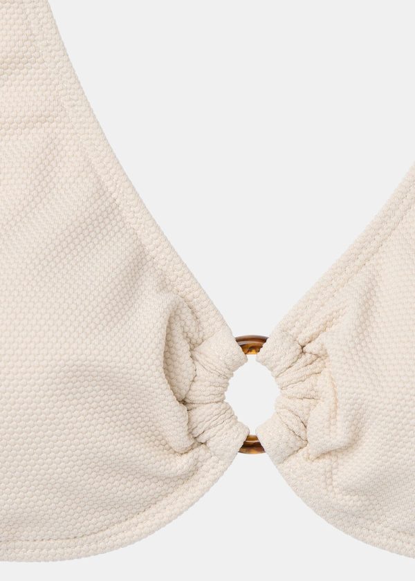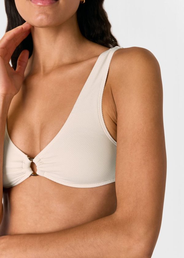 Ready for your next vacation escape? Our beautifully designed Ring Detail Bikini Top creates the perfect beach-ready look when paired with its matching bottom. Expertly crafted in a soft ivory hue with an elegant ring accent at the center, this top adds a sophisticated touch to your swimwear collection.