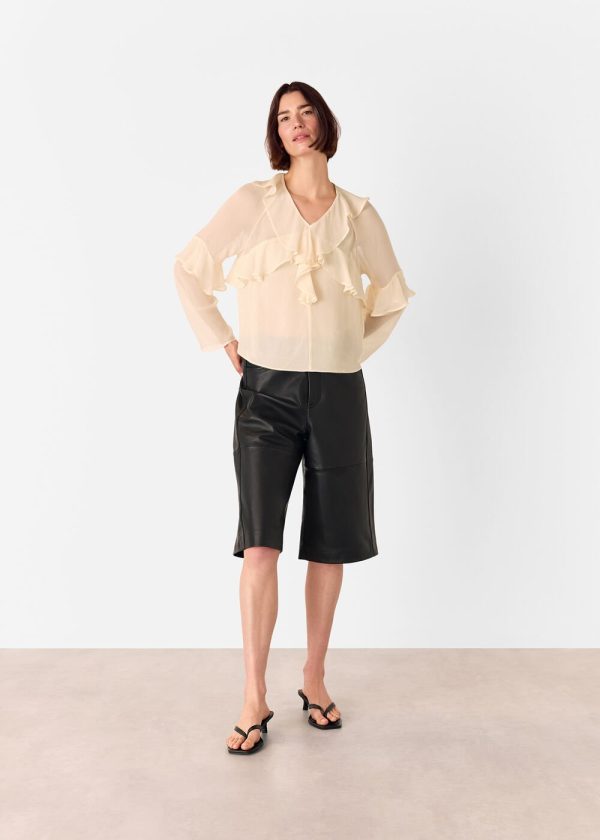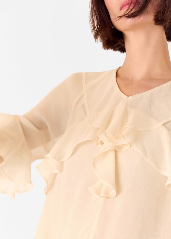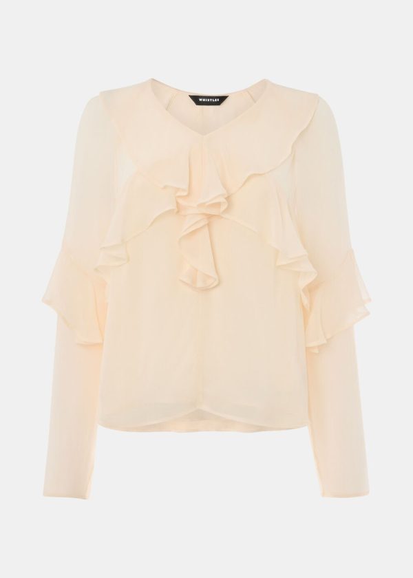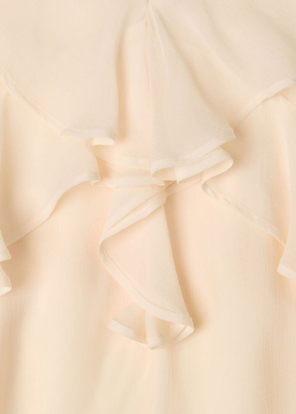 Elevate your evening wardrobe with our sophisticated Ruffle Frill Blouse, designed to make a statement at any after-dark event. Cut in a comfortable relaxed fit with a beautiful ivory hue, this blouse features exquisite ruffle detailing along the collar neckline and throughout the body. It effortlessly complements any bottom in your closet, offering versatile styling options and refined elegance for your night out.