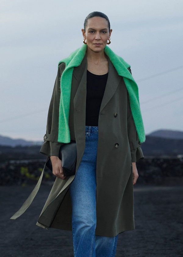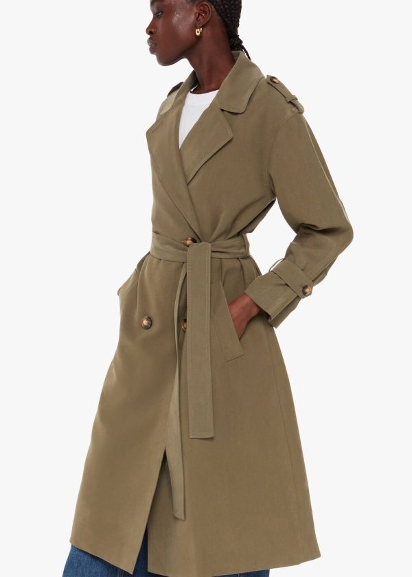 Elevate your spring-to-summer wardrobe with the timeless Riley trench coat, your ultimate transitional piece. This khaki beauty features a sophisticated mid-length cut with a relaxed silhouette that moves effortlessly with you. The double-breasted front and adjustable tie waist create a flattering fit that works seamlessly with everything from dresses and skirts to jeans and tailored trousers.