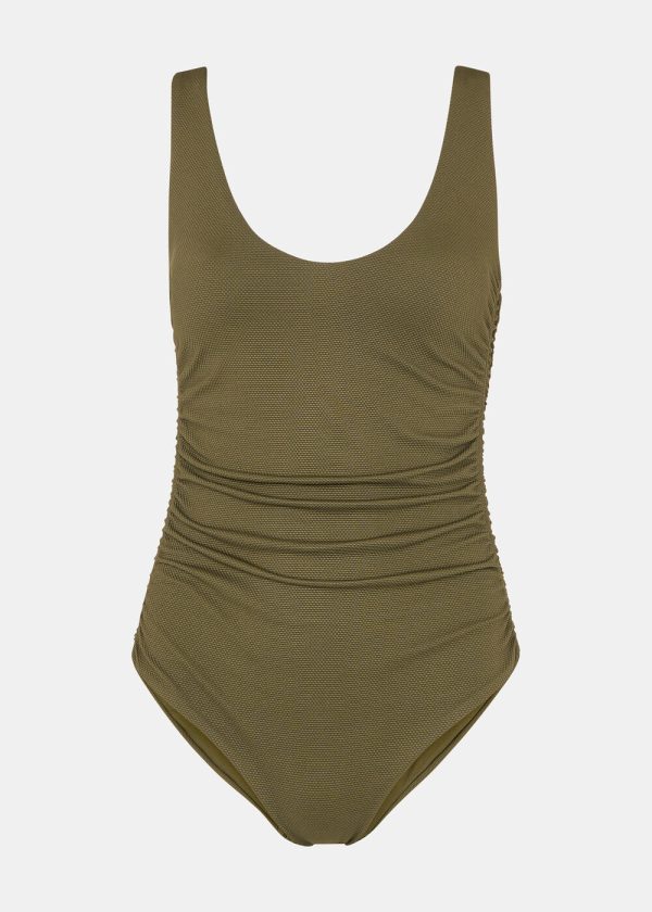 Experience exceptional comfort and style with our Textured Side Ruched Swimsuit, designed to elevate your beach and poolside moments. Crafted in a versatile khaki hue, this swimsuit features flattering ruching along the sides and a classic round neckline for a sophisticated look. Perfect for vacation getaways and sunny days, this essential piece combines fashion and function for your active lifestyle.