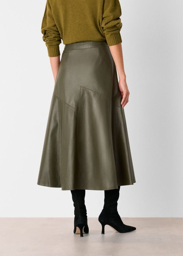 Elevate your wardrobe with this timeless leather midi skirt that transitions effortlessly from day to evening. Our signature Zig Zag panel pencil skirt features premium, responsibly sourced leather with a luxurious soft feel. Designed with a flattering A-line silhouette and contoured waist, this skirt creates a sophisticated silhouette with eye-catching panel detailing. Style it with classic knitwear and heeled boots for a polished look that works for any occasion.