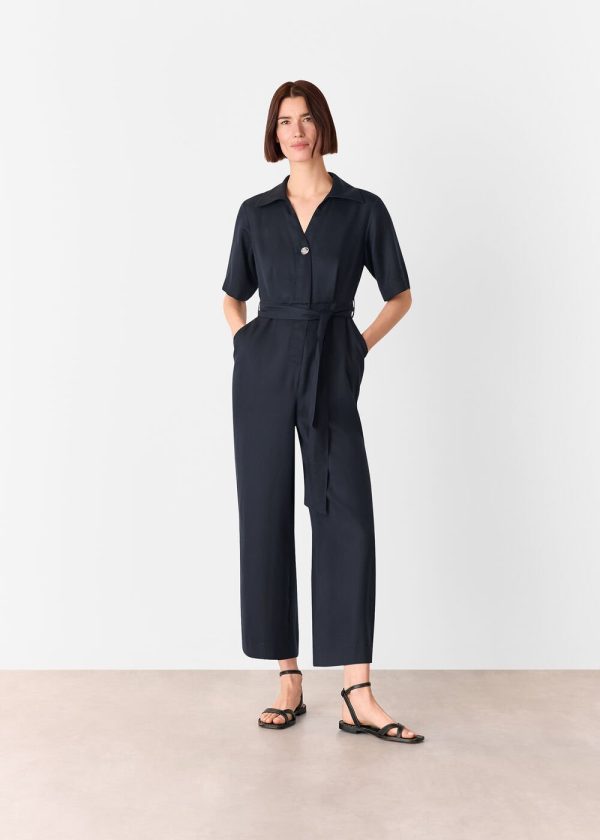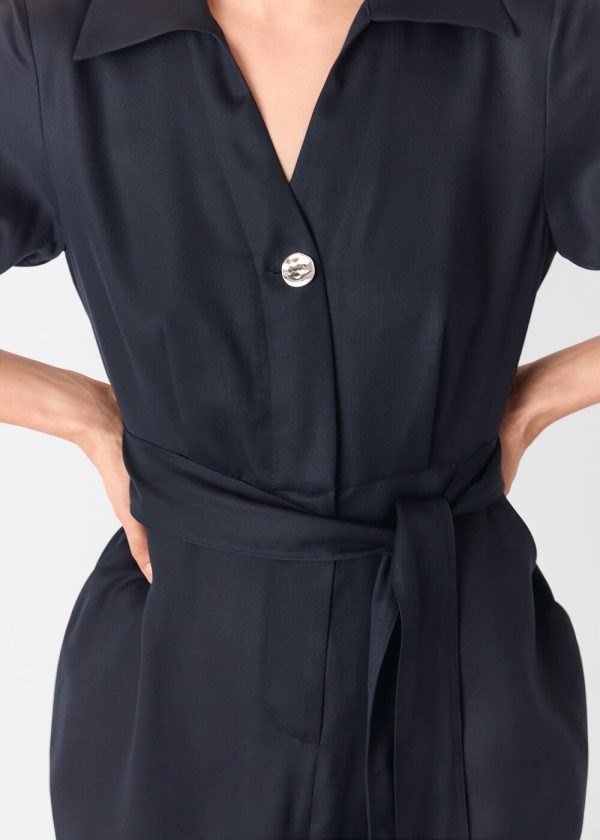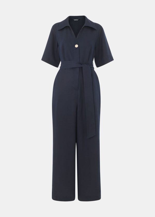 Experience exceptional comfort and sophisticated style with our Button Front Jumpsuit, designed for effortless everyday wear. This timeless navy piece features a classic collar, flattering V-neckline, and elegant button detailing that adds refined charm. The adjustable belt creates a customized waist definition, making this the perfect transitional piece that works from day to evening.