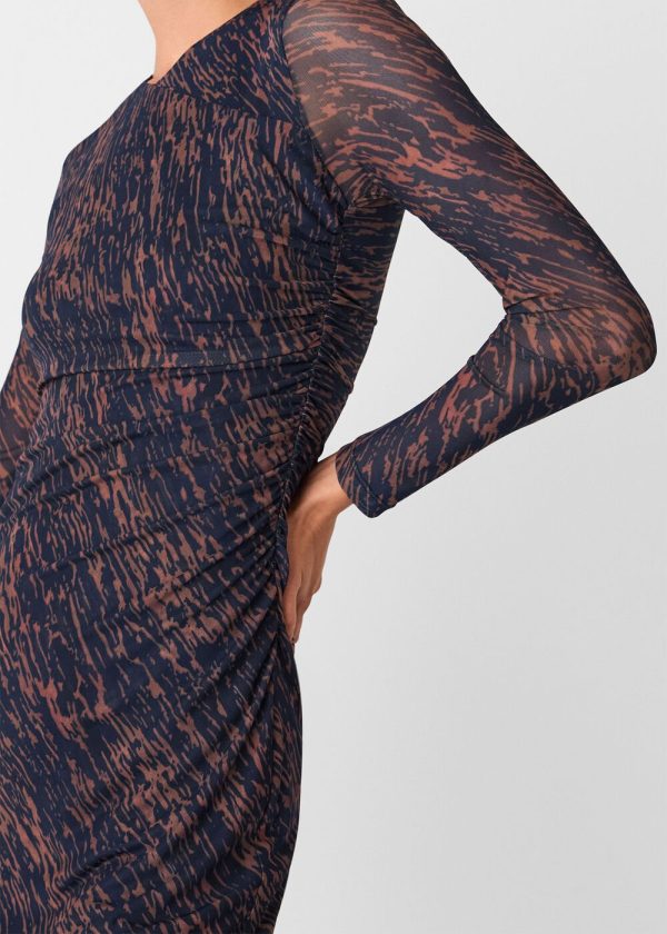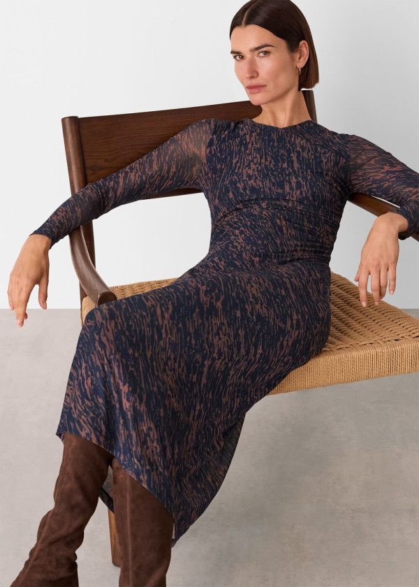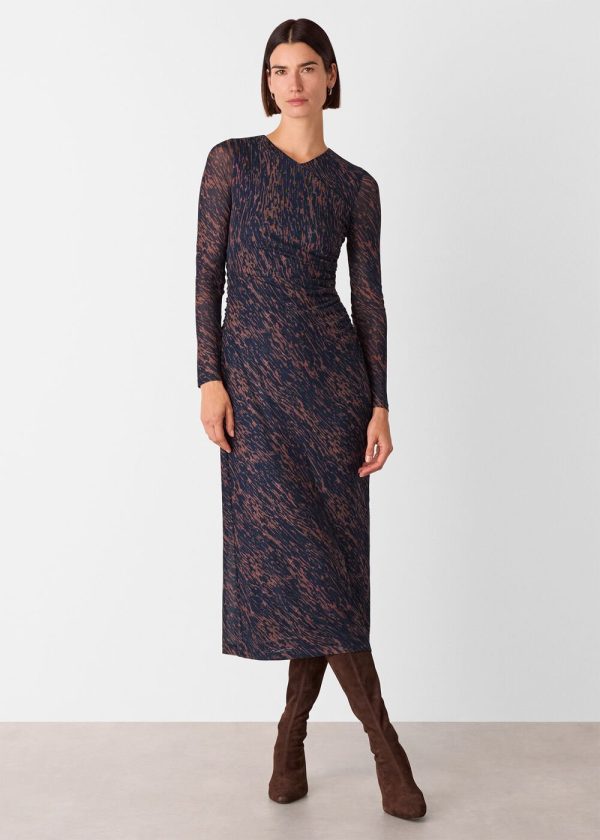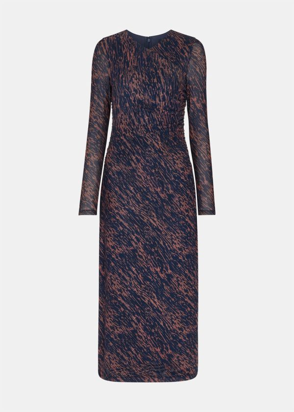 Women’s Navy/Multi Abstract Print Mesh Midi Dress | Whistles