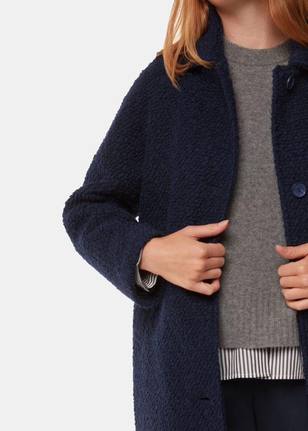 Our Design Team crafts each coat with precision, creating essential Whistles pieces designed to become cherished wardrobe staples season after season. The Romy Boucle Coat showcases this commitment with its sophisticated navy hue, elegant collared neckline, and roomy wide sleeves perfect for comfortable layering. A truly timeless investment piece that elevates your cold-weather style.