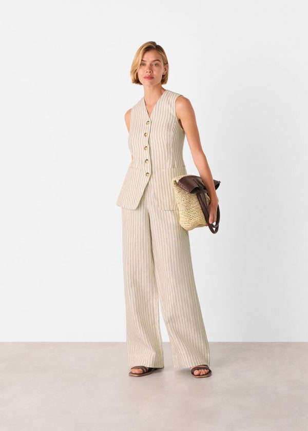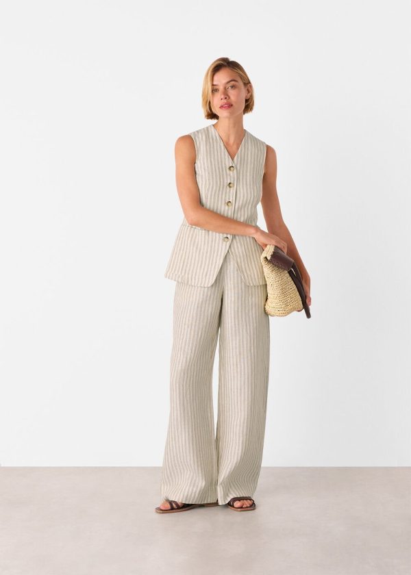 Elevate your wardrobe with this sophisticated neutral linen stripe coordinated set, designed for effortless style and comfort.