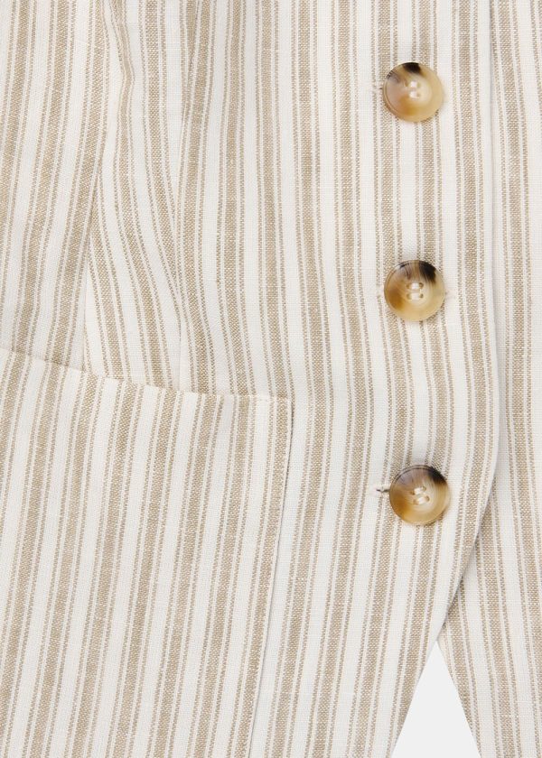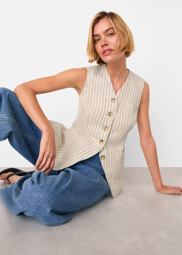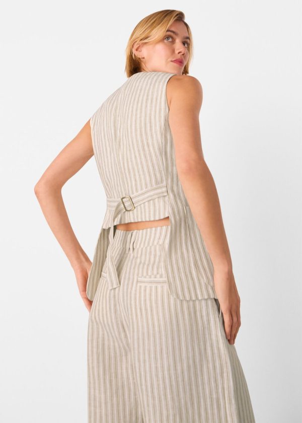 Elevate your seasonal wardrobe with our effortlessly chic Linen Stripe Waistcoat, designed for sophisticated everyday wear. Crafted from premium breathable linen featuring subtle neutral stripes, this versatile piece includes functional flap pockets and an adjustable back fastening that creates a flattering silhouette. Perfect for creating polished office looks or stylish casual ensembles when paired with your favorite bottoms.