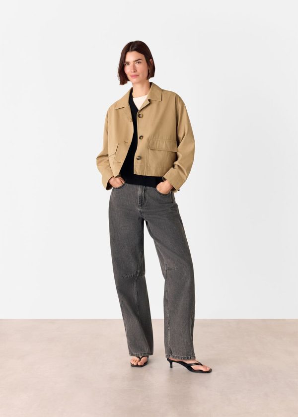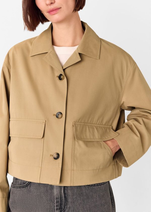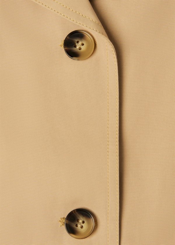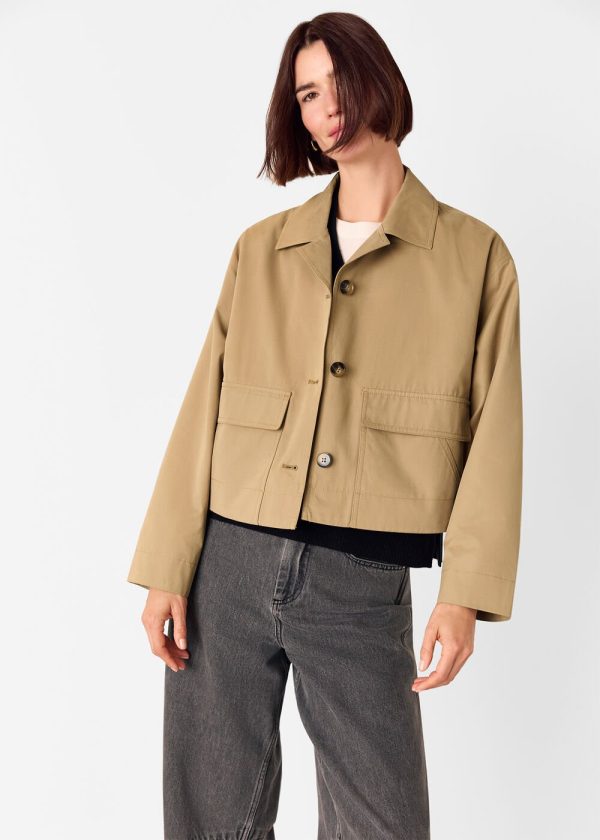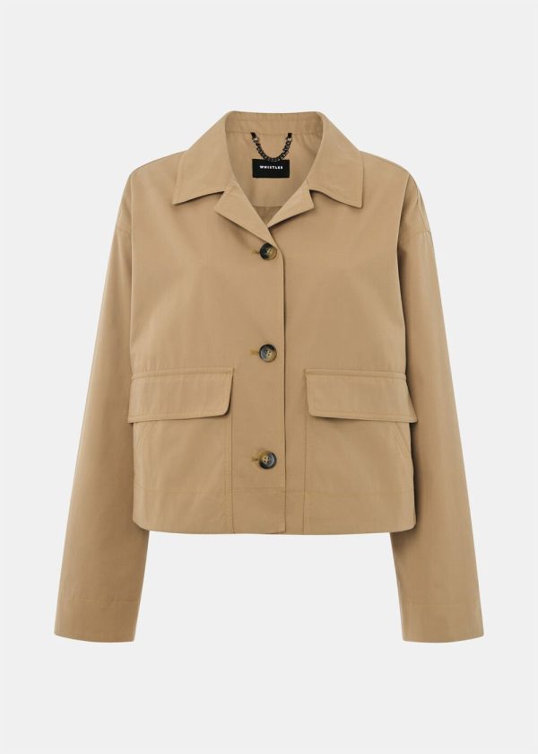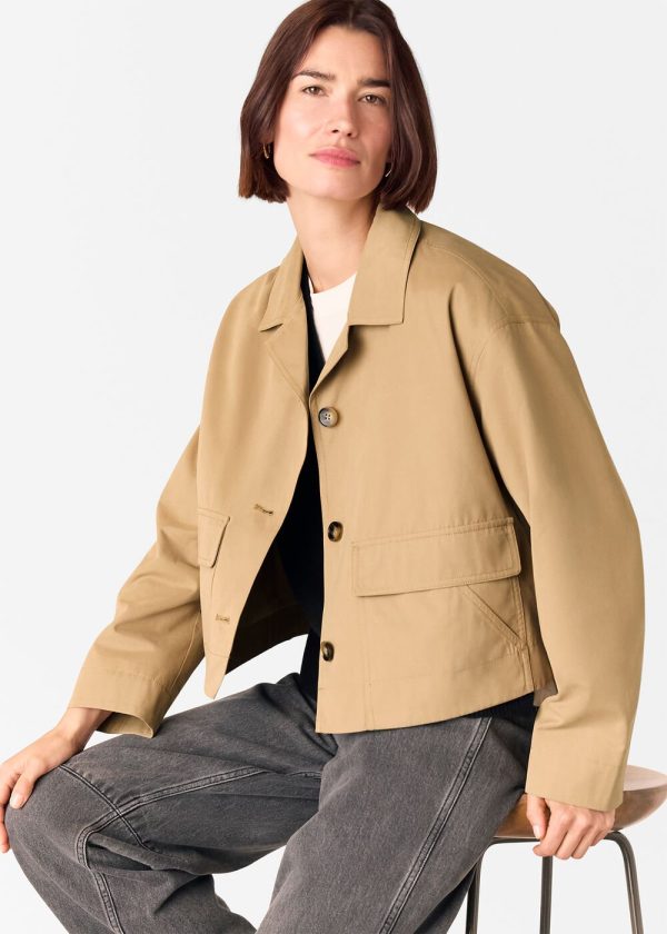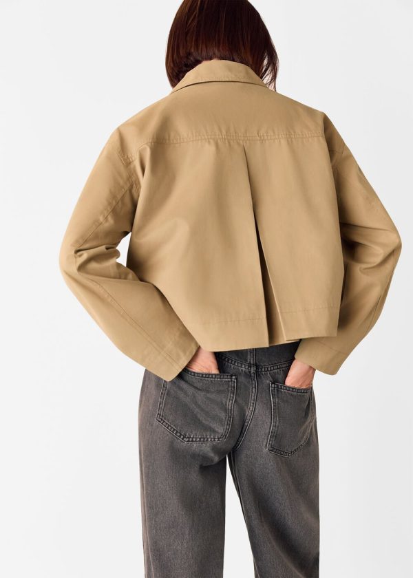 Ideal for summer breezes and seasonal transitions, our Short Cotton Trench Jacket delivers effortless everyday style. Designed in a versatile neutral hue, this lightweight cropped silhouette offers the perfect layering solution for unpredictable weather. Thoughtful details include a classic collar, spacious front patch pockets, and elegant back vent construction for enhanced mobility.