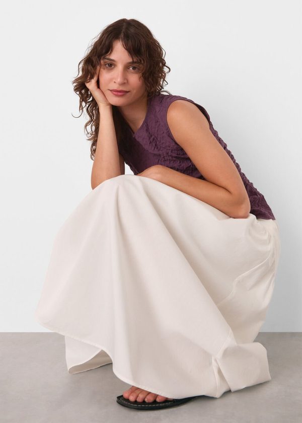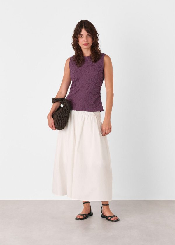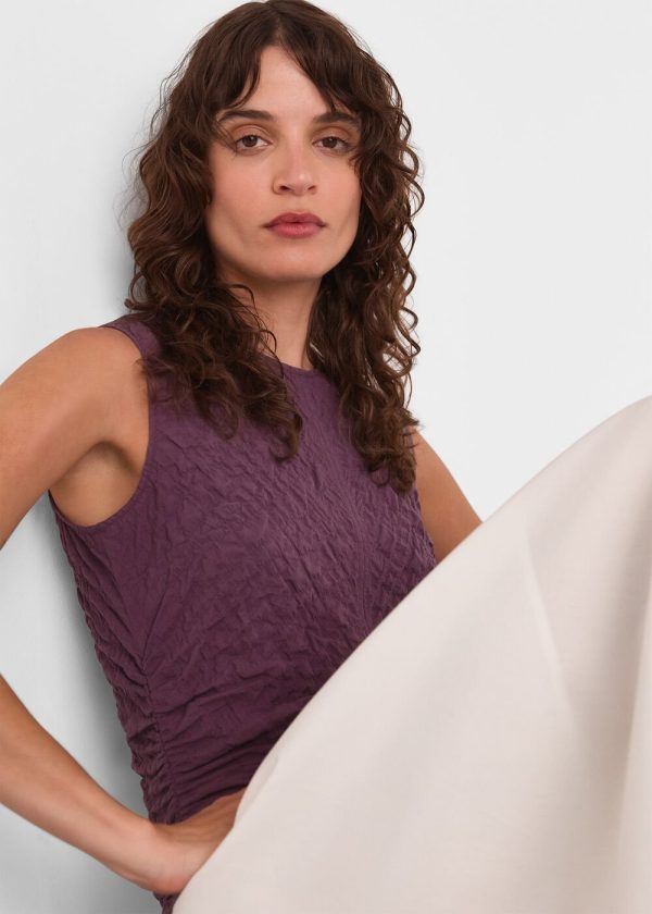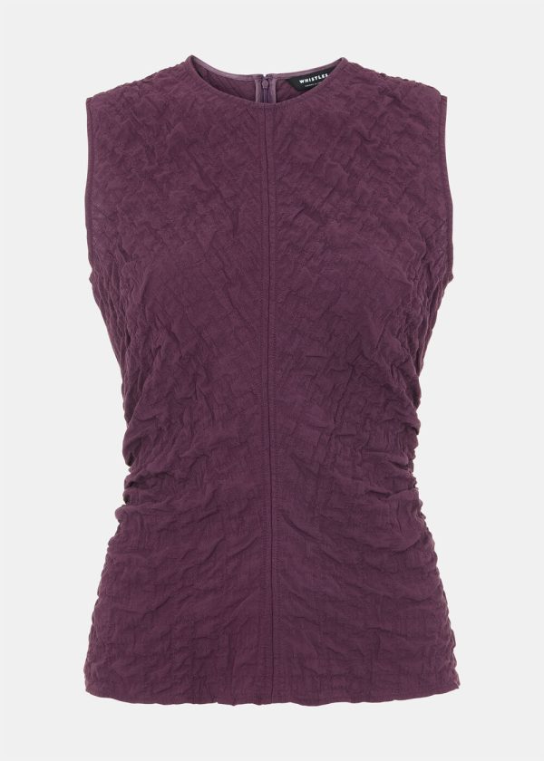 Perfectly versatile for both professional settings and weekend outings, this Cotton Textured Tank elevates any outfit with sophisticated style. Designed in a luxurious plum hue with a distinctive textured fabric, featuring a sleek sleeveless design with round neckline and convenient back zip closure for a polished, streamlined silhouette.