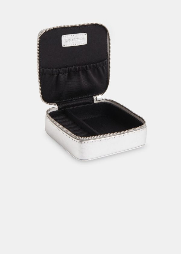 Keep your precious jewelry perfectly protected and beautifully organized wherever life takes you with our expertly crafted Aelia Jewelry Box. This sophisticated case features smart compartments designed to securely hold everything from delicate rings to statement necklaces and earrings. Finished in a luxurious metallic silver hue with a practical square silhouette, it boasts a reliable zip closure that keeps your valuables completely secure. The compact, travel-friendly design slips effortlessly into your everyday handbag or luggage pocket, ensuring your jewelry stays pristine and tangle-free.