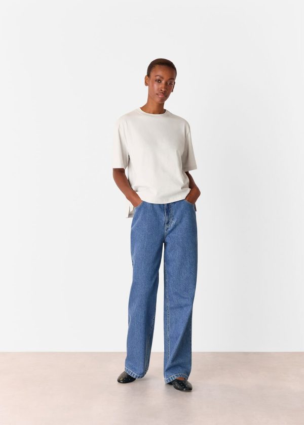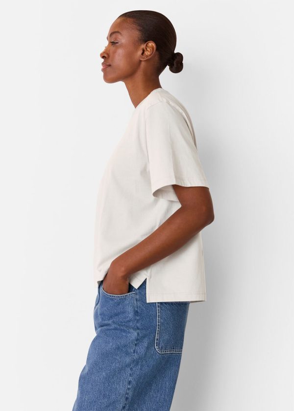 Meet your new go-to essential: our Relaxed Tee combines everyday comfort with effortless style. Crafted from responsibly sourced organic cotton in a versatile stone hue, this premium top features a contemporary relaxed fit with neatly folded sleeve details that elevate your casual wardrobe. Perfect for tucking into your favorite high-waist jeans or pairing with shorts for that perfectly laid-back American style.