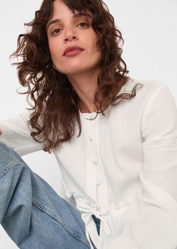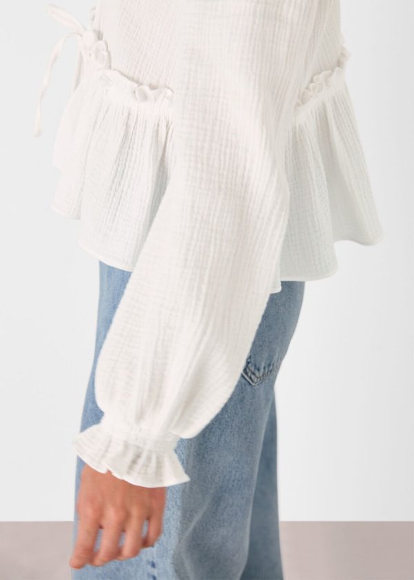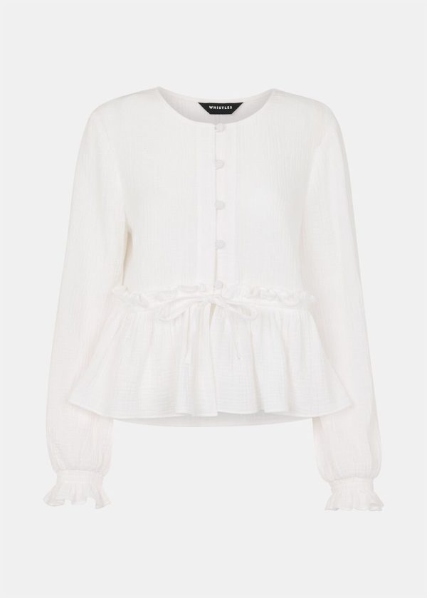 Elevate your weekend wardrobe with our effortlessly chic Cotton Frill Blouse, designed to transition seamlessly from brunch dates to city outings. This versatile top combines breezy comfort with sophisticated style, featuring a flattering peplum silhouette that accentuates your waistline. The delicate cheesecloth texture and feminine frill detailing create an elevated casual look that’s perfect for warm-weather dressing.