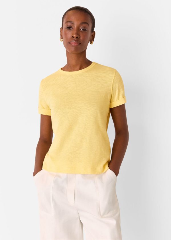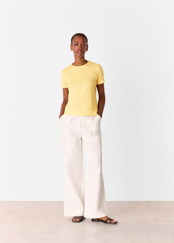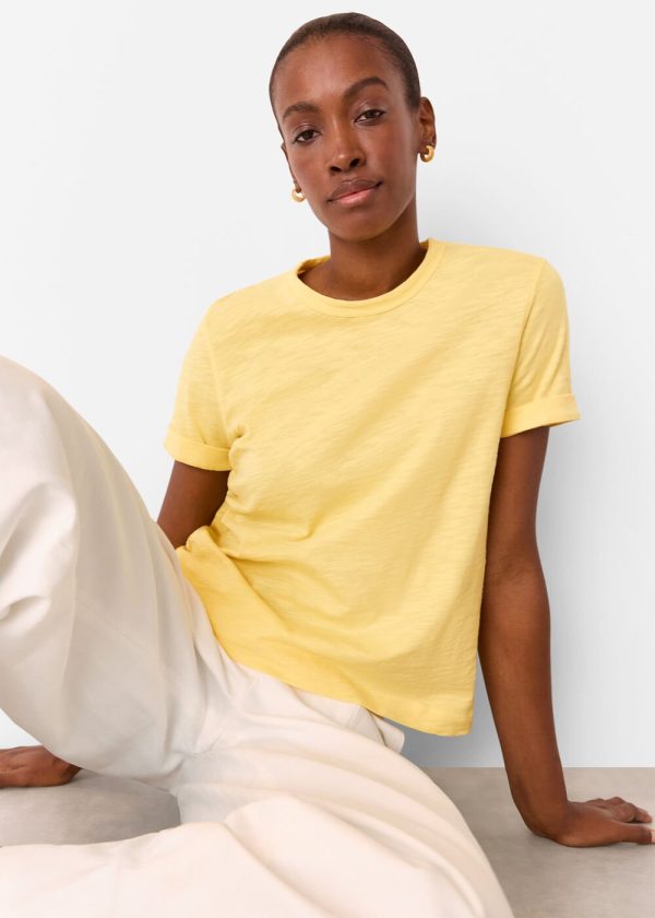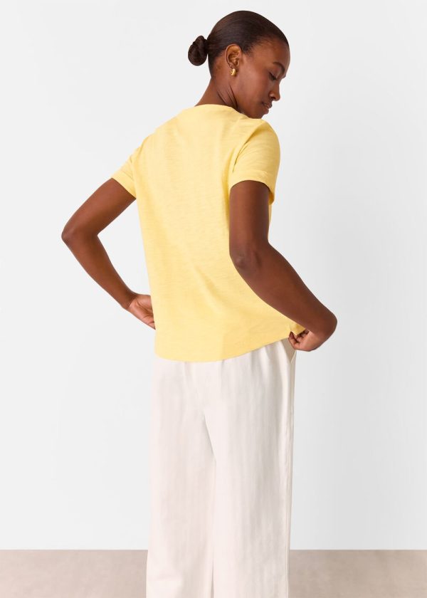 Crafted from premium breathable cotton in a vibrant yellow hue, our Emily Ultimate T-Shirt delivers the perfect relaxed staple that effortlessly complements any wardrobe. Style it with your favorite denim and casual footwear for an easy spring-summer look that moves seamlessly from day to evening.